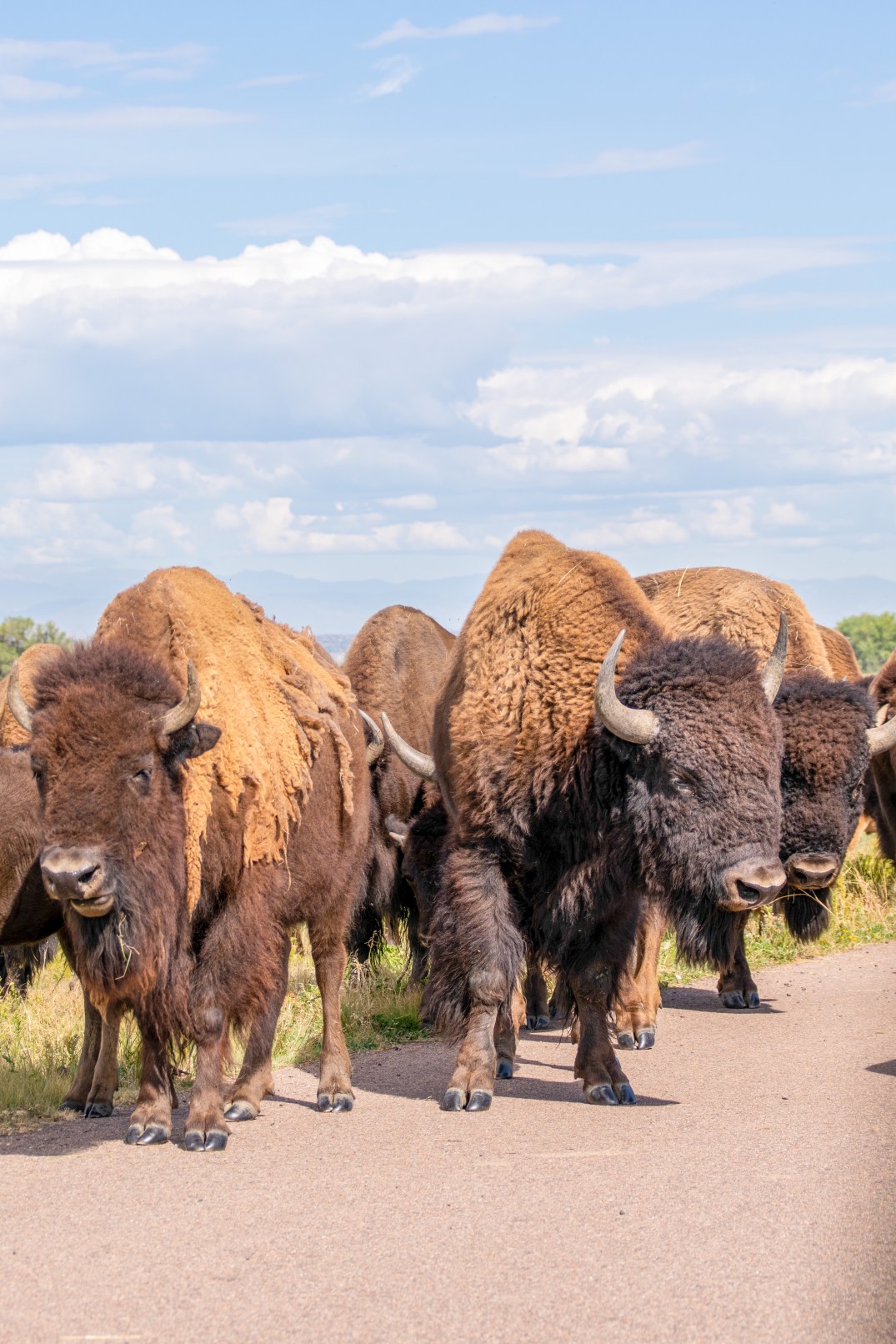 So, this large herd (of at least 80) very smelly, growling bison are heading in our direction. We are ready, our cameras are ready, the moon roof is open and then…